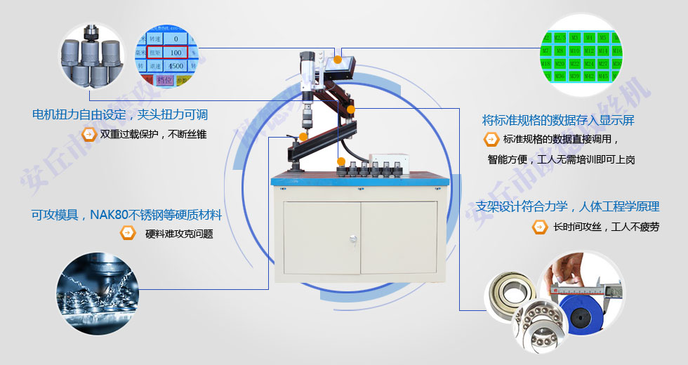 數(shù)控攻絲機(jī)服務(wù)第一的宗旨。我公司以只有最好的精神指導(dǎo)各項(xiàng)工作大力塑造品牌。我公司新廠區(qū)擁有齊全的現(xiàn)代化生產(chǎn)設(shè)備。充分利用區(qū)域和行業(yè)優(yōu)勢(shì)。精誠(chéng)服務(wù)贏信譽(yù)是我們的